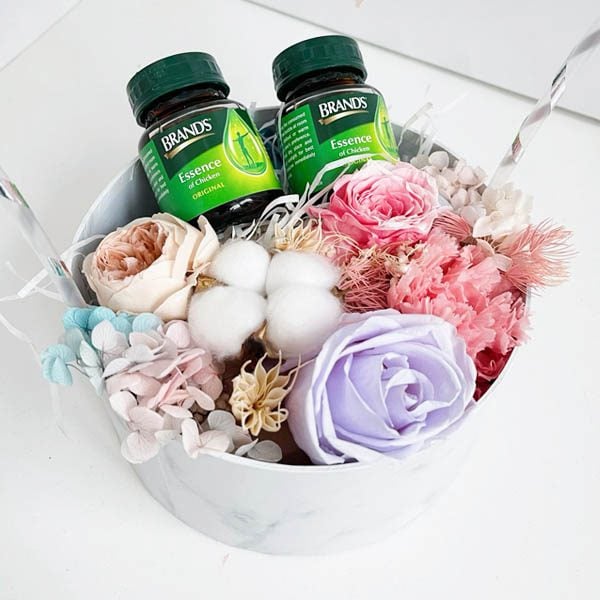 Introducing our beautifully crafted hamper that’s perfect for anyone who appreciates the beauty of preserved flowers and loves to indulge in a refreshing beverage. This hamper includes a stunning arrangement of preserved flowers, a delicious beverage, and a personalised balloon to make your gift even more special. And to top it all off, the hamper also includes a personalised balloon that will make your gift truly unique. We can add any message you like to the balloon, from a simple “Thank you” to a heartfelt message of love or congratulations. It’s a lovely way to add a personal touch to your gift and make it even more special. So why not treat yourself or a loved one to a hamper today?