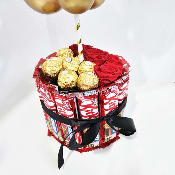 Indulge in the sweetest delight with our chocolate hamper. This hamper is a chocoholic’s dream, packed with an array of decadent chocolates that will satisfy any sweet tooth. From rich dark chocolate to creamy milk chocolate and everything in between, our hamper is a chocolate lover’s paradise. With a personalized balloon included, it’s a thoughtful and unique way to show someone you care. Whether you want to add a message of love, congratulations, or just a fun message to bring a smile to someone’s face, we’ll make sure your message is beautifully written on the balloon. So why not treat yourself or a loved one to a hamper today?