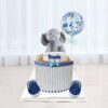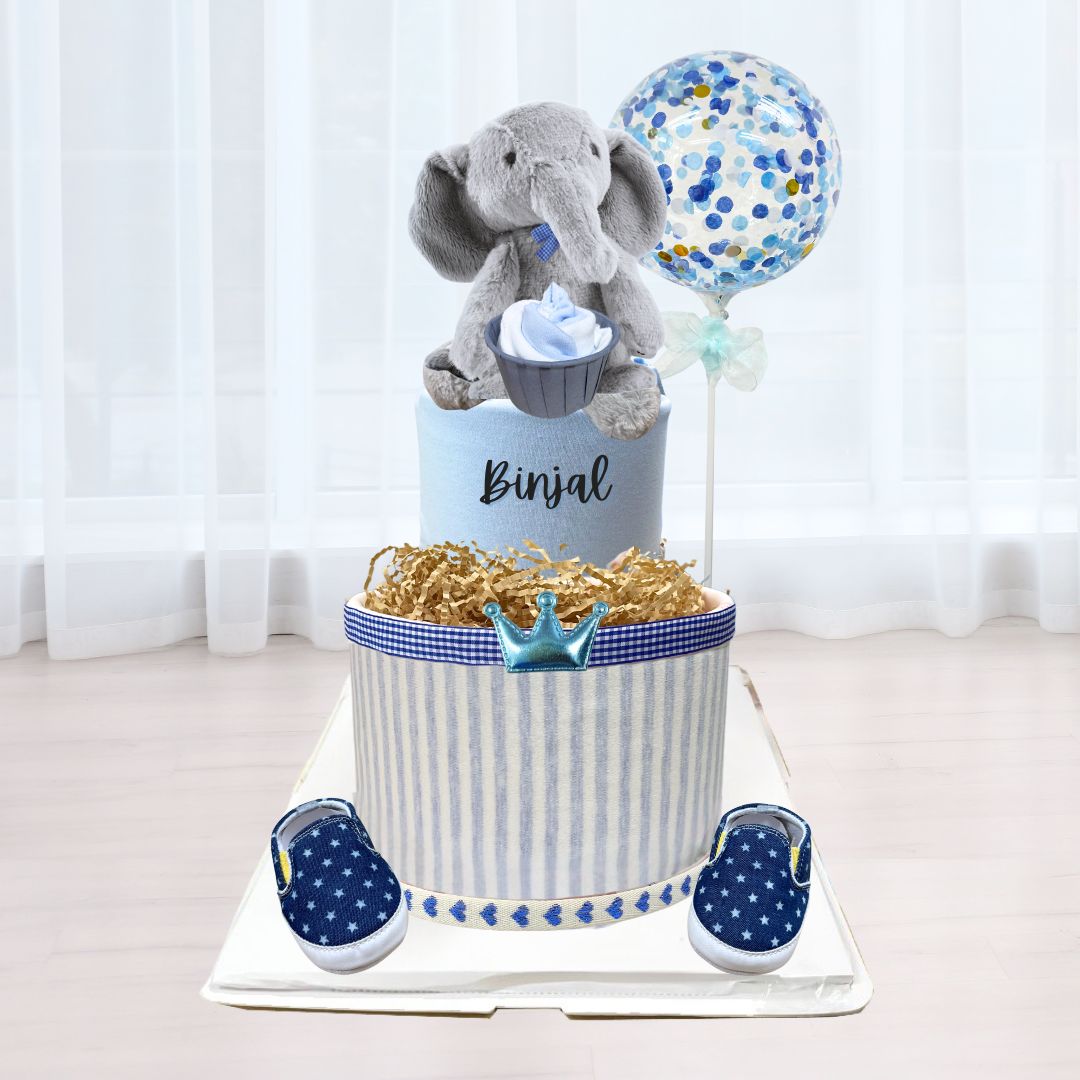 Fluffy Elephant 2 Tier Diaper Cake – Personalized Baby Shower Centerpiece | Perfect Baby Boy Gift
